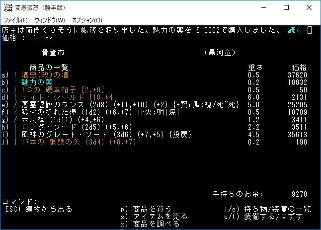 魔理沙の特技は魅力の値も影響をする。ブラマで魅力の薬を購入です。わざわざ買わなくてもスカムをしていれば手に入りそうだけどね。