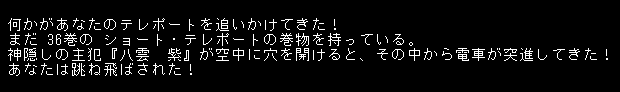 魔力の嵐は撃たれなかったが200~300のダメージをくらいました。何が起きたとログを見てみると電車を召喚されたらしい(笑)。そんなのありかよ!まあ隕石の魔法をくらったようなものか。