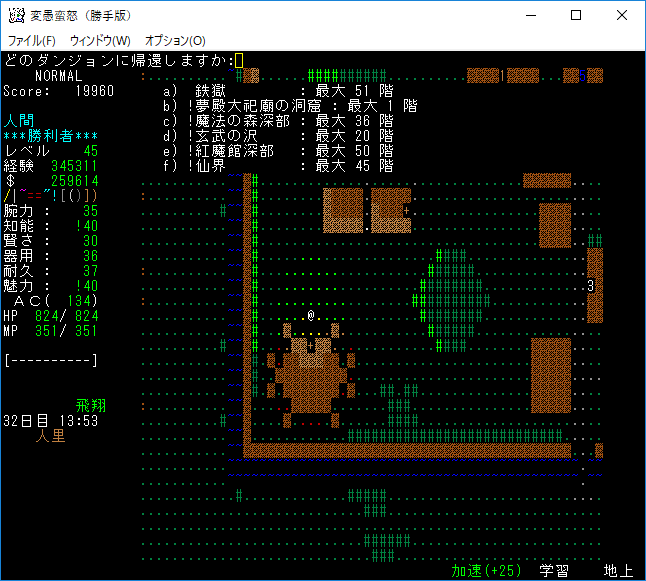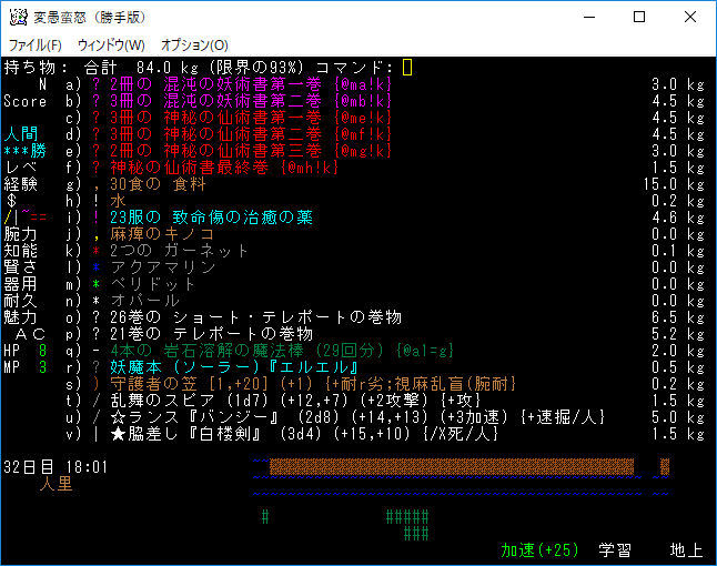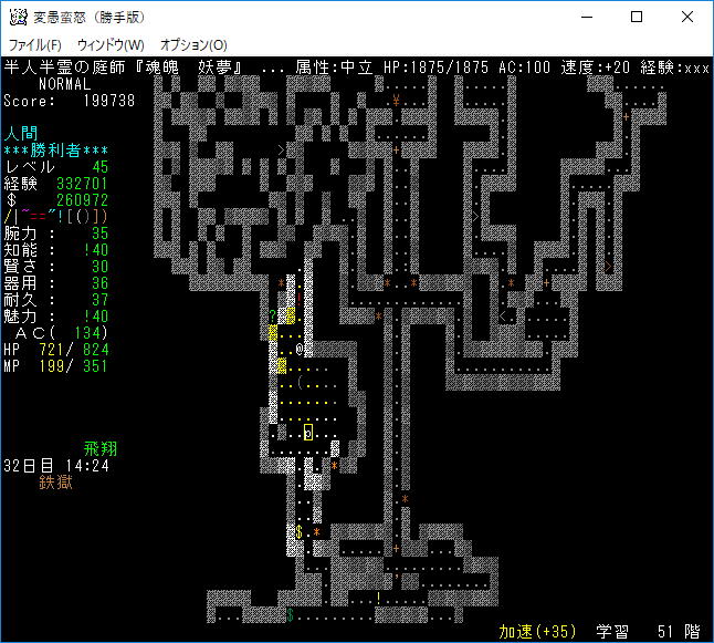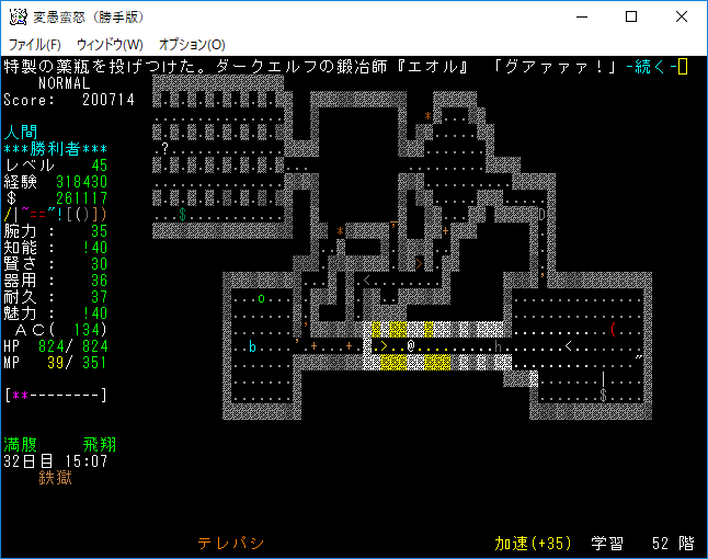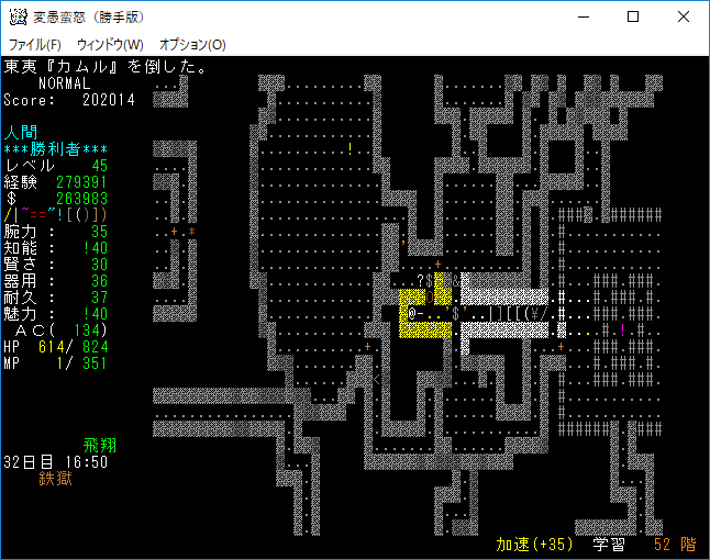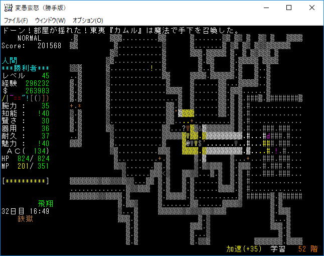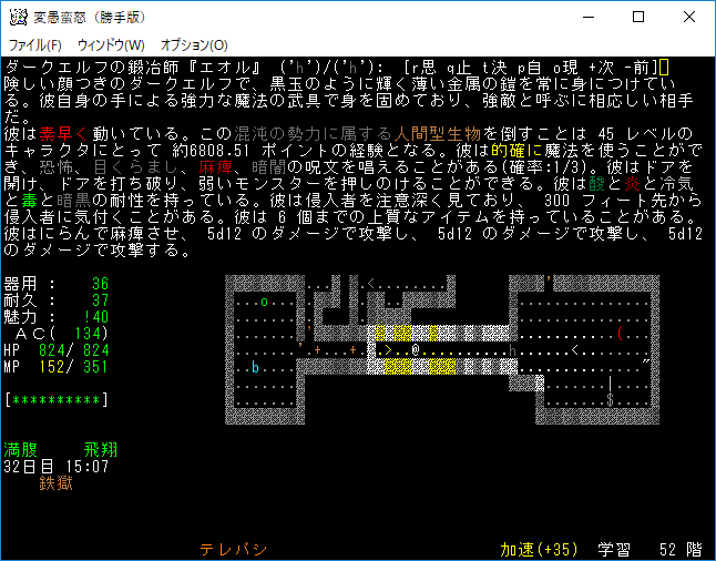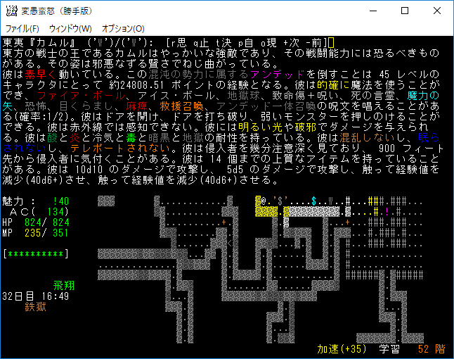おはようございます。変愚蛮怒東方Project勝手版のプレイ日記を始めます。今回も鉄獄を探索します。ランクエの56階を目指しております。