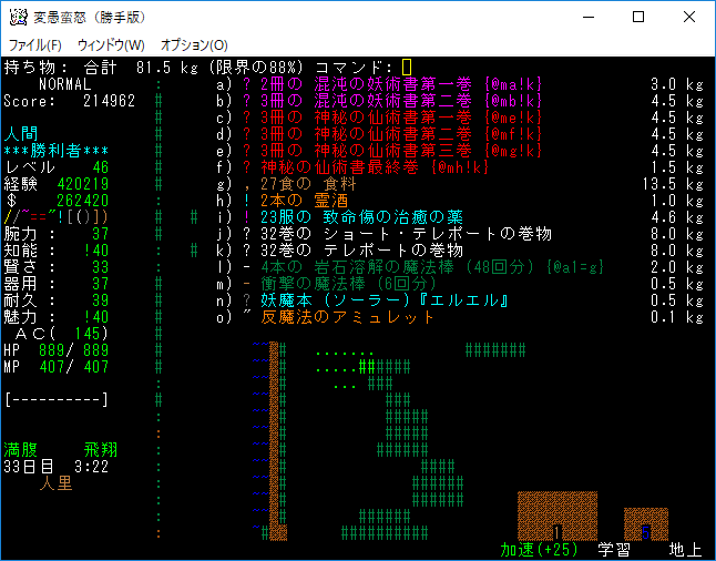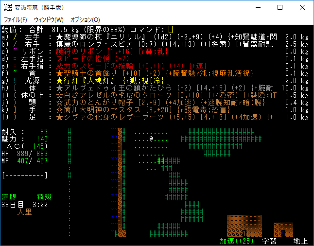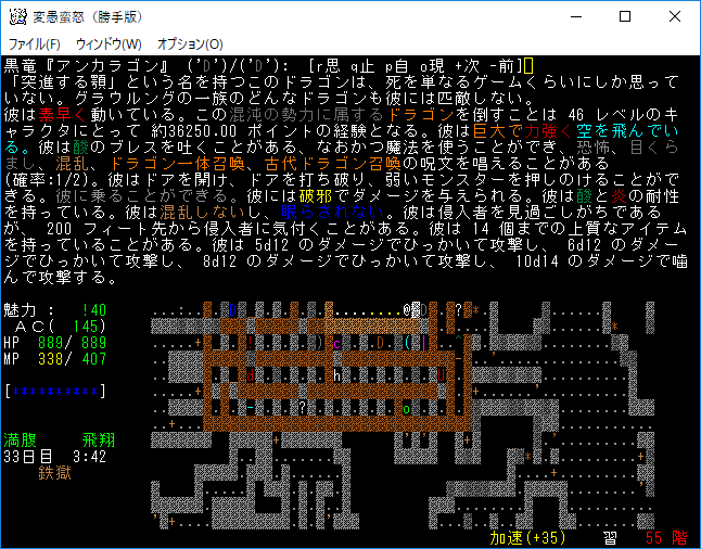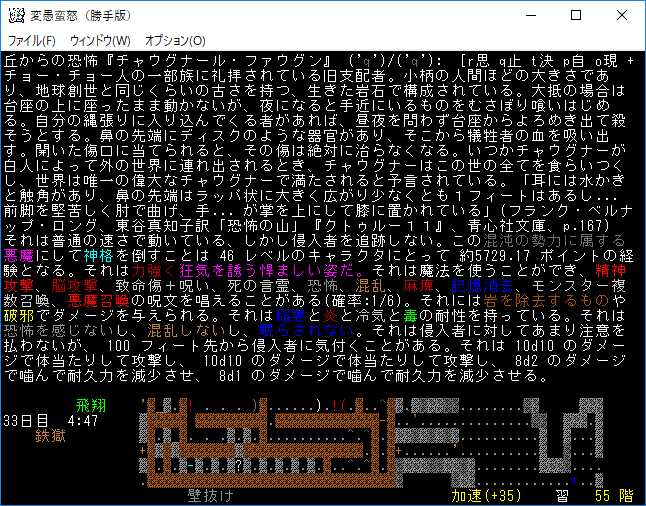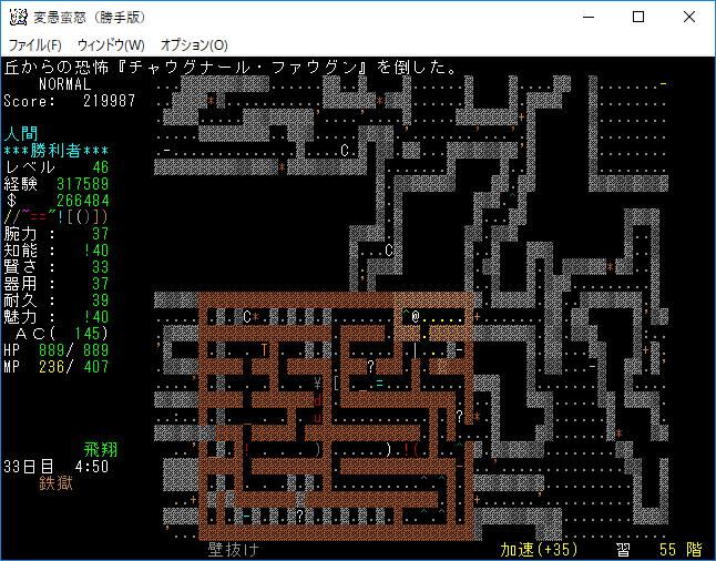おはようございます。変愚蛮怒東方Project勝手版のプレイ日記を始めます。今回は鉄獄56階ランダムクエストに挑戦しよう。余程のことが無いかぎり地下56階へ降ります。