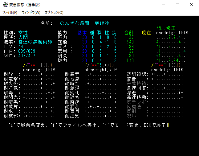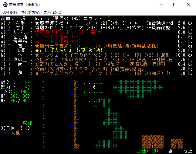 スピードの指輪が+4から+7に変わりました。この魔理沙は滅茶苦茶速いな。勝手版の基準では並以下なんだろうけど。