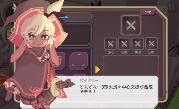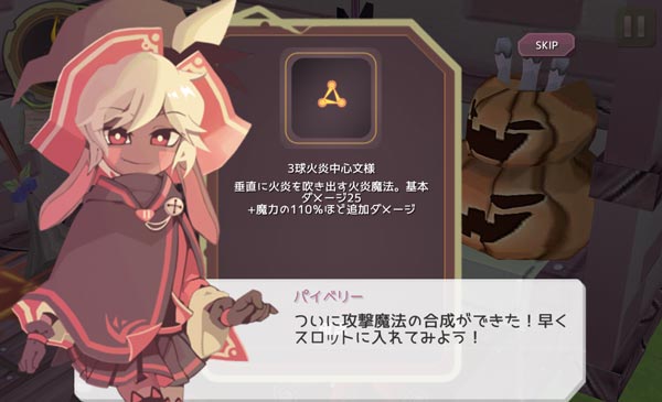 矢印が示している左上のアイコンが『3球火炎の中心文様』なのでしょう。他に5つあるみたいです。パイベリーは6種類の魔法を操るのかもしれません。