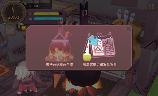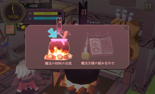 魔法を合成するには1時間かかります。パイベリーが『うっしゃ・・・うっしゃ・・・』と合成を始めました(笑)。このゲームは時間を管理するのが重要なのですね。100日しか期限が無いらしい。