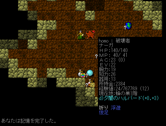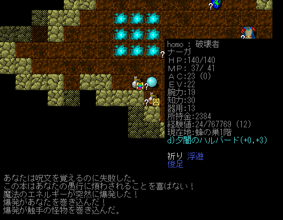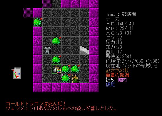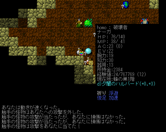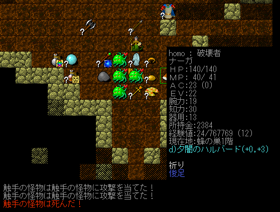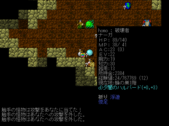 まあ素のEVも高いし触手が4匹いたから勝てた。5階にはスピードの薬を飲んで降りようと計画していました。数日経過したから忘れてしまった(言いわけ)。
