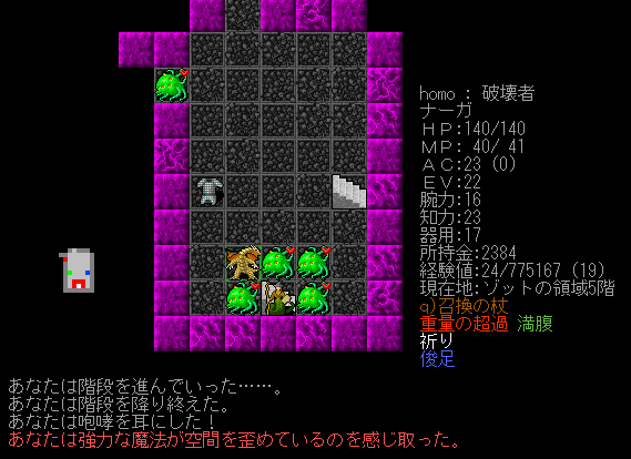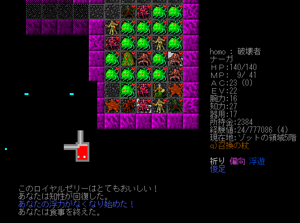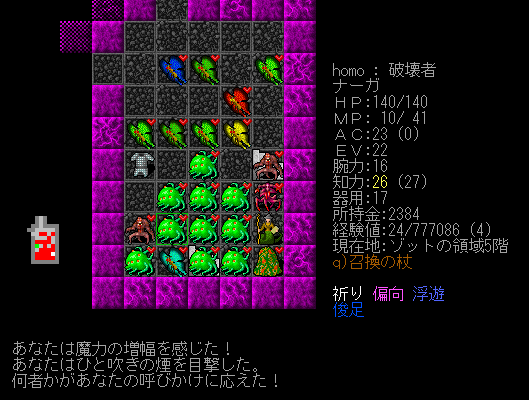 Dungeon Crawlのプレイ日記を始めます。ナーガ召換術師をプレイ中です。ゾットの領域4階を攻略しました。これより最深階の5階へ向かう準備をします。