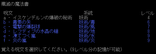 召換術スキルを17にしたら妖術スキルを伸ばします。イスケンデルンを空撃ちすることになるのかな。魔法の矢を記憶してくれば良かった。食料がもたなそう(泣)。