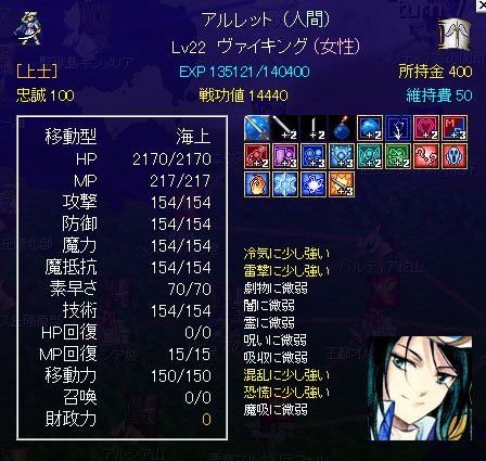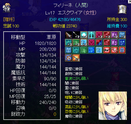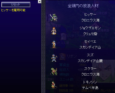 軍資金は豊富にある。ユニットを雇いまくれば余裕かと思いきや違うのです。いくら一般ユニットを増やしても人材ユニットには勝てないからね。人材ユニットは消滅しないし敗北をしても上手く逃がせばレベルが上がる。