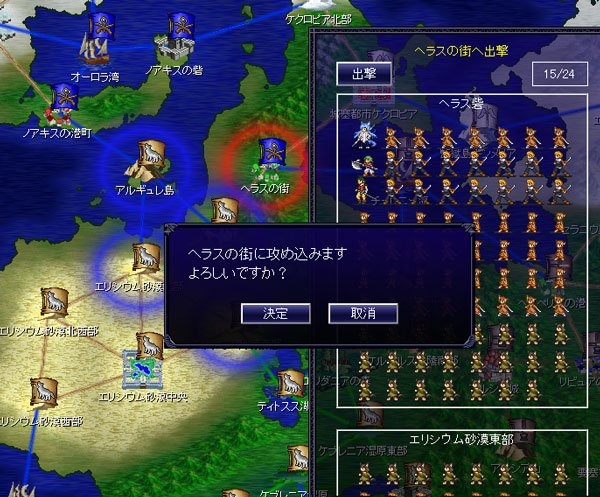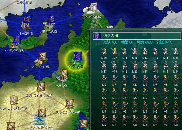 ヘラスの街はユニットのレベルが上昇しています。早く進攻しないと手がつけられなくなるぞ。だけどヘラスの街へ攻め込むとクーニッツ騎士団が加勢に来ます。
