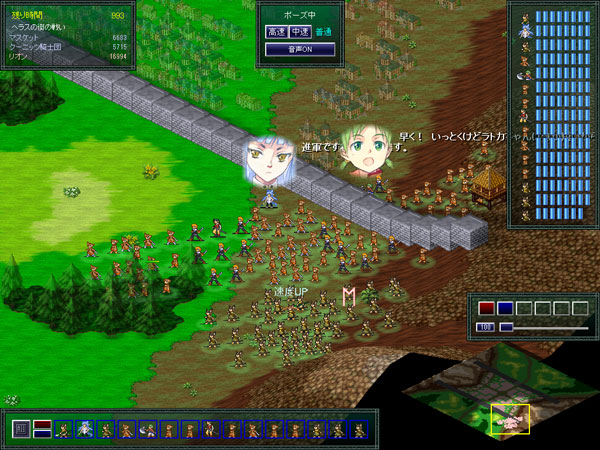 人間とケモミミが混ざっておりリオン軍にしては珍しい光景だ。つーか、城壁でユニットが二分されているんだけど!敵と戦うにはどちらへ行けば良いわけ?