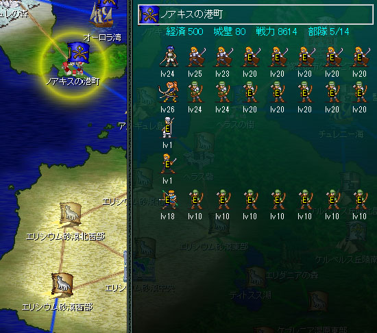 放浪人材になっていたルイスがマスケット軍に復帰しています。せっかく人材ユニットを放浪させたのに無駄になるかもしれない。もうノアキスの港町はリオンの主力じゃないと占領できないだろう。