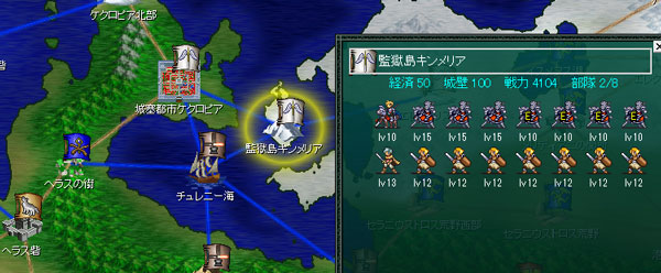 クーニッツ騎士団の援軍は監獄島キンメリアからやって来るのです。この都市にも微妙にユニットが増えているな。