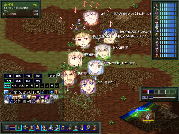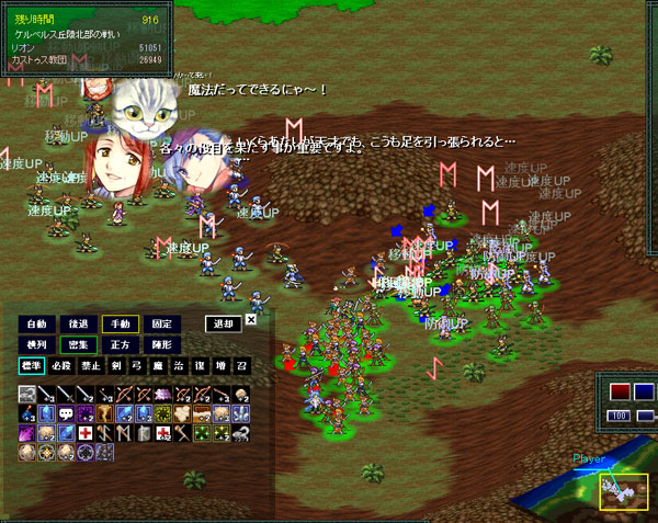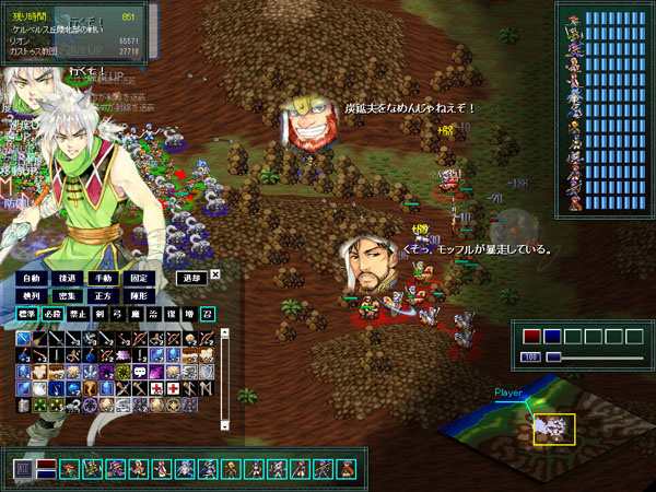 ローレンが1人でラクダ部隊を全滅させそうな勢いです。あいつを傭兵として雇ったのは大正解だったなあ。この勢いのまま召喚をオンにして敵に突撃しましょう!