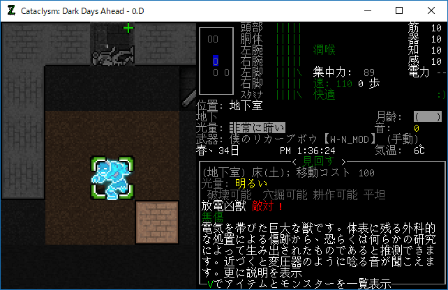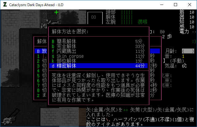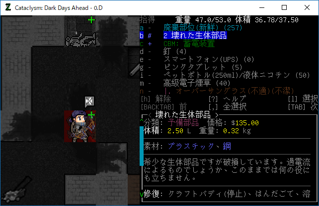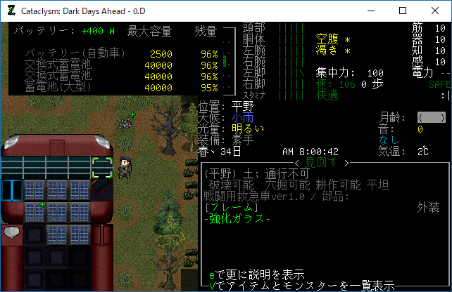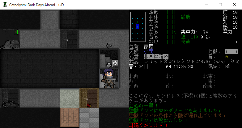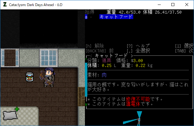 この投稿は「Cataclysm Dark Days Ahead」のプレイ日記です。毎日更新をします。目次はこちら。