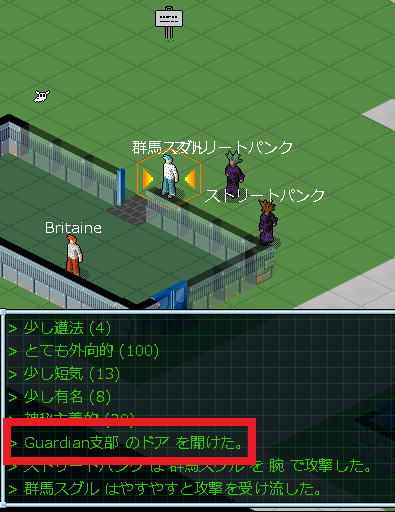 ストリートパンクは何度たおしても新手が襲撃してくるから大変だよ(泣)。戦闘をしながら建物に近づいてドアを開けました。この建物は名称はGuardian支部のようだな。