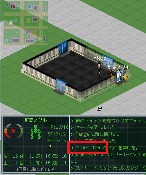 そろそろウォーターフロントの探索が終わりそうだ。次はPritate's Denという施設を訪問しました。wikiには「Pritate's Denは海賊の巣」と書いてあります。先ほど訪問したメック屋の店主は山賊だったが、今度は海賊が店主なのかあ?