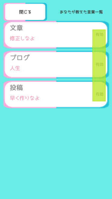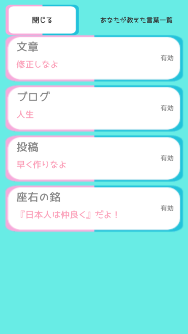 あれ?言葉を有効にするか無効にするかの選択肢はあるのに削除ができない。しまった、そういう仕様だったのか。では覚えられる言葉の数を増やそう。