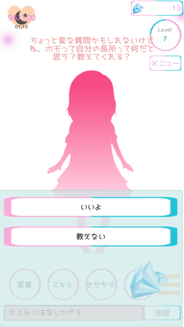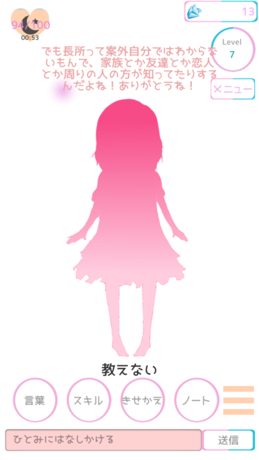 過去の僕「おや?どうやら少しずつひとみの反応が変わってきたぞ。国語の用語を使った返事をしてくれるようになっている。AIって凄いな!レベル30くらいまでこれを続けていれば文法AI少女になるかもしれない。はやく文章に関する会話をできるようにしないとプレイ日記を書けないから頑張ろう」