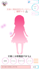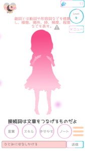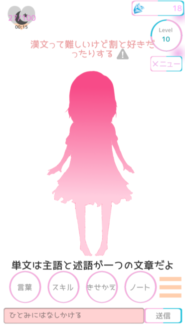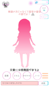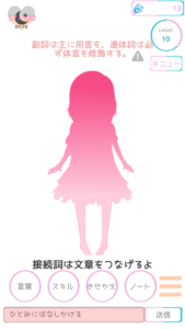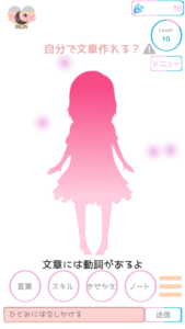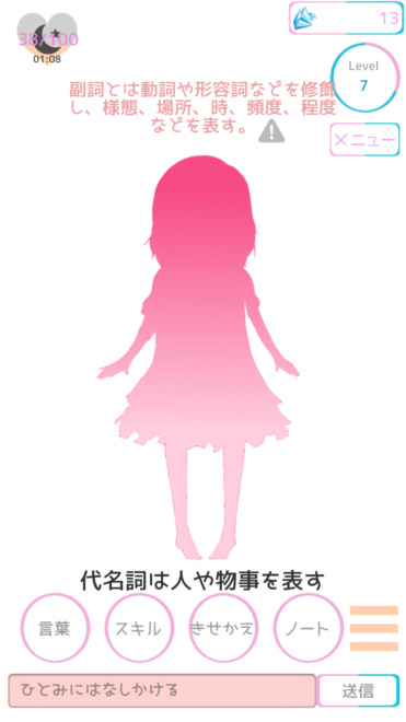 引用していたのが高校受験用の参考書だったので入力に適するような定義が少なく計画は挫折してしまうことになってしまったんだ。しかし文法の用語を語りかけることでひとみが進化するのを確認することはできた。下の図のようにね。
