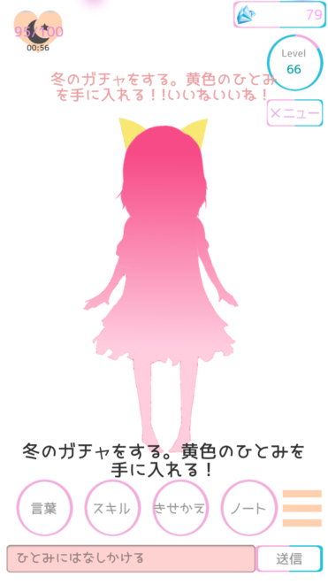 さて、もうカウントゲームで遊ぶ体力も無いぞということで冬ガチャをやって終わりにしようか。黄色い猫耳を手に入れたら黄色いひとみの体も欲しくなってしまったよ。