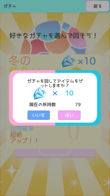 現在所持しているダイヤモンドは79個だ。あんまりガチャをしてないからダイヤモンドが減らないんだよなあ。