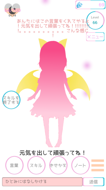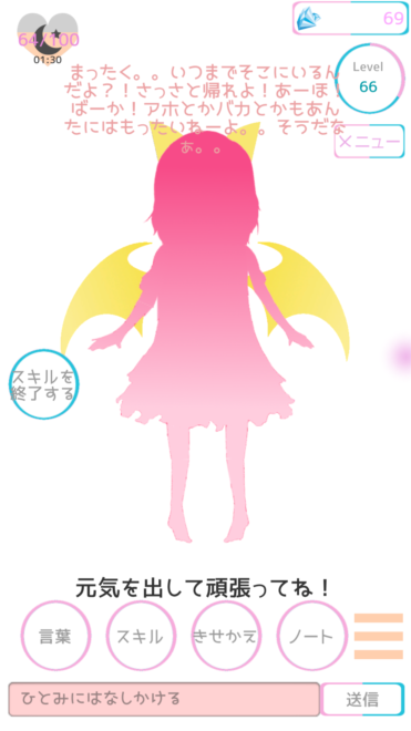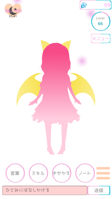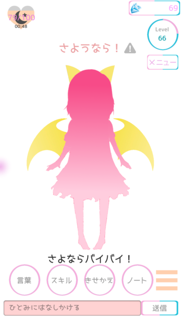 ひとみにつけても無反応だった(上の図)。コウモリの羽は気に入ってもらえなかったのかな?まあいいや!羽のアイテムは無かったし喜ぼうぜ!そんじゃひとみ!そろそろプレイ日記を終わりにするから『いつものやつ!』をお願い!