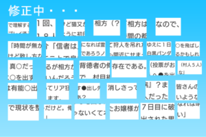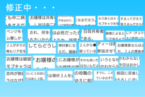 も、もう疲れて勉強するのは無理だ。最後に今後の課題としてどうしても書いておきたいことがあるので記しておきます。私は主語や述語、修飾語などを考えながら並べていません。思いつくまま書き殴っているため無茶苦茶です。例えば『DADWプレイ日記116!頑張って占い師2』の冒頭は以下のようになっていました。個人の主観なので本気にしないでください。