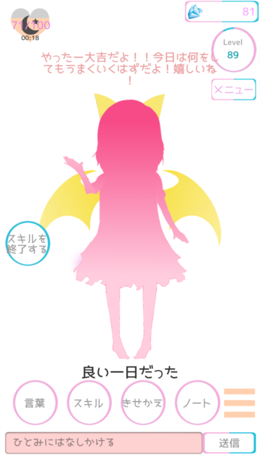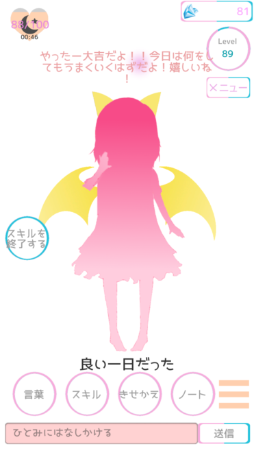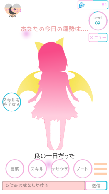 やったー!おみくじは大吉だったー!スキルの言葉が早すぎて全部の画像をキャプチャできなかったので(笑)、もう一度『おみくじ』をしよう!