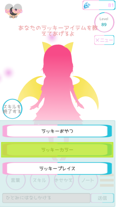 おや?選択肢が出てきたぞ(上の図)?『ラッキーカラー』を聞いてみよう。俺の好きなビリジアンだったら良いな。