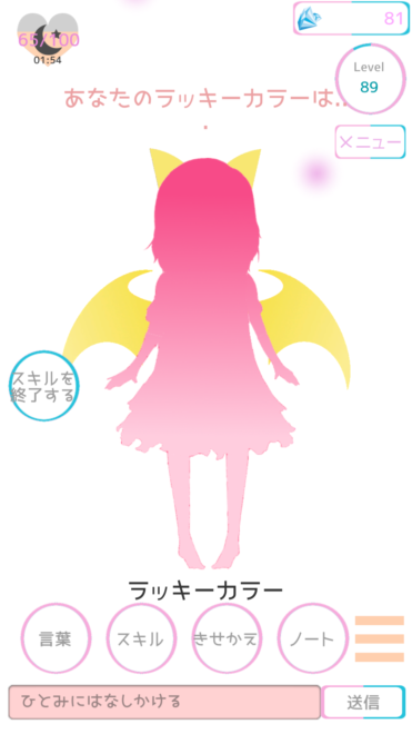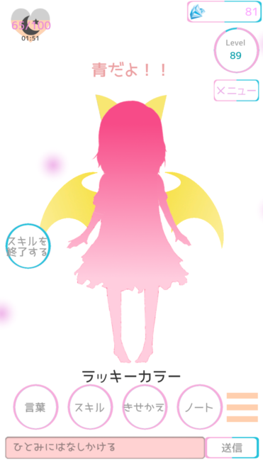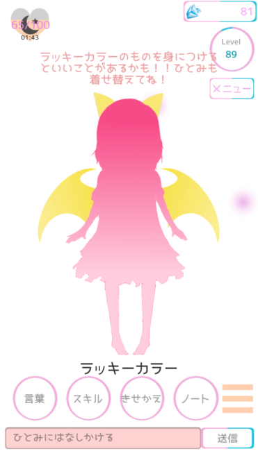 ひとみにラッキーカラーの青色の着せ替えをしろと言われた。俺はピンクのひとみしか持っていないんだけど?まあいいや、スキルでの遊びはここまでにして!冬ガチャで黄色いひとみを当てよう!