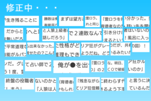 ノンケが○出しをされて村人の結束は崩壊した。しかし、俺の真霊能結果で逆転できるだろう。