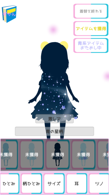 『青の星柄』は黄色い耳のアクセサリーと合わないけど見るからに檄レアっぽくて高級感が半端じゃない。それでは!レア・檄レア確定ガチャを引きます!