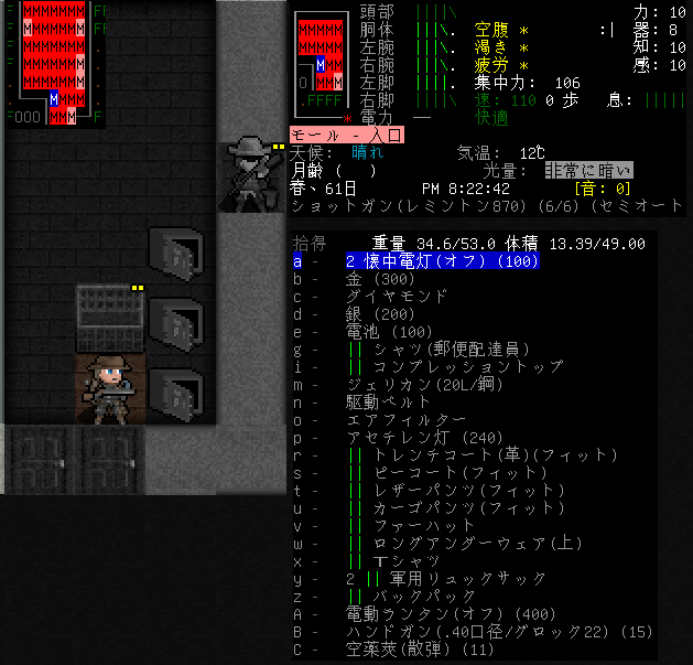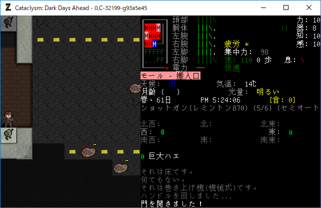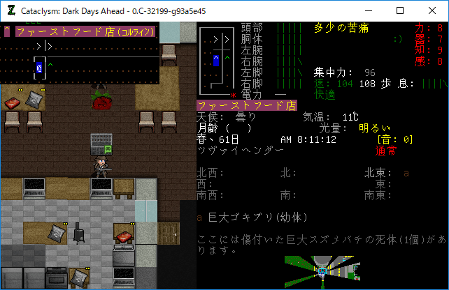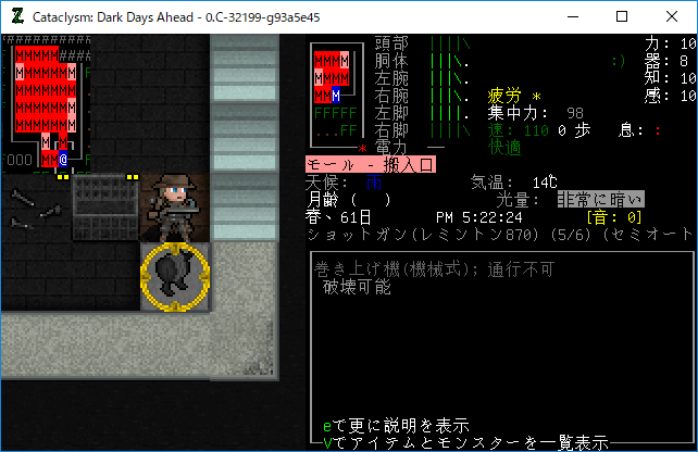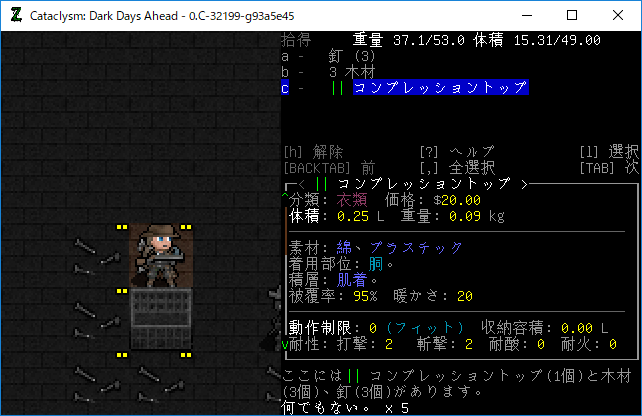 この投稿は「Cataclysm Dark Days Ahead」のプレイ日記です。毎日更新をします。目次はこちら。