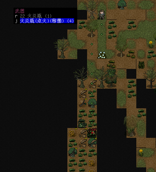 女王トリフィドは真菌塔と違って移動をするボスキャラなのだろうか。女王の周囲は敵ばかりで近づくのは危険です。森林を生成する能力で逃げ道を塞がれるかもしれません。遠距離から火炎瓶を投げることにします。