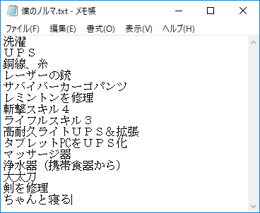 現在のノルマは上の画像。遠征中にやりたいことをメモしていました。後述する理由によりメモ帳に書いたノルマは明日実行するかも。