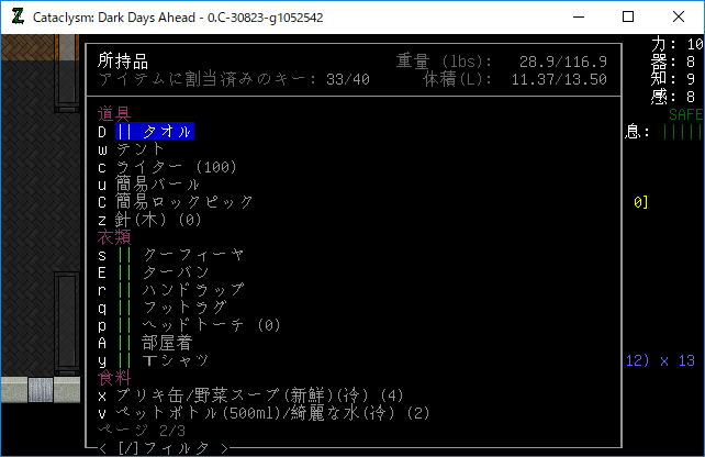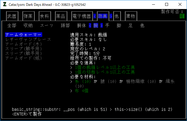 この投稿は「Cataclysm Dark Days Ahead」のプレイ日記です。毎日更新をします。目次はこちら。