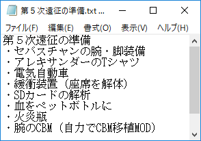 忘れずに実行しておきたいノルマは電気自動車化、緩衝装置の取り付け、火炎瓶の製作かな。あとは避難センターに到着してからでもよろしい。楽しみながらぼちぼち頑張ろう。