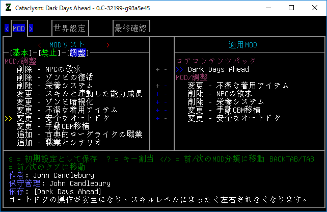 この投稿は「Cataclysm Dark Days Ahead」のプレイ日記です。毎日更新をします。目次はこちら
