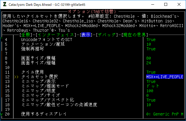 Cataclysmのプレイ日記を始めます。今回はMSX++DeadPeopleEditionを最新のバージョンにアップデートしよう。なるべく皆さんが使用しているタイルと同じ物にしたい。名前がMSX++LIVE_PEOPLEに変わったんだっけ?