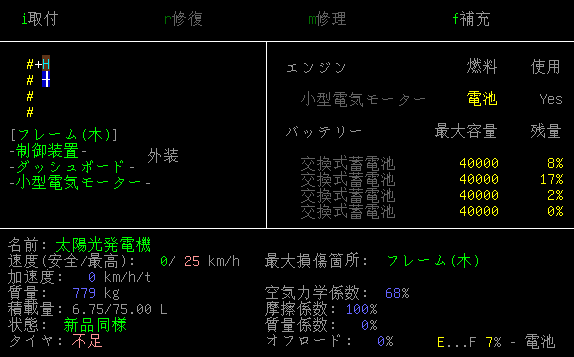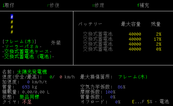 取り付けた大型蓄電池は第4次遠征でかっぱらった物です。電力が満タンになったら最強号の大型蓄電池と交換する予定だ。