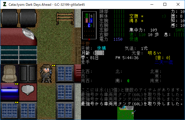 この投稿は「Cataclysm Dark Days Ahead」のプレイ日記です。毎日更新をします。目次はこちら。