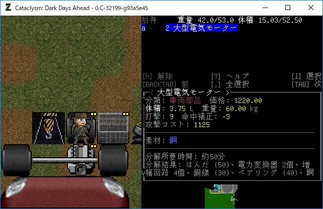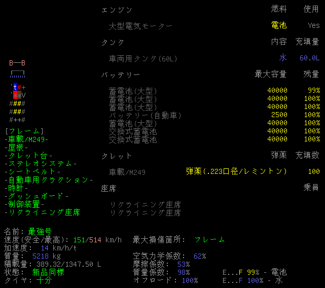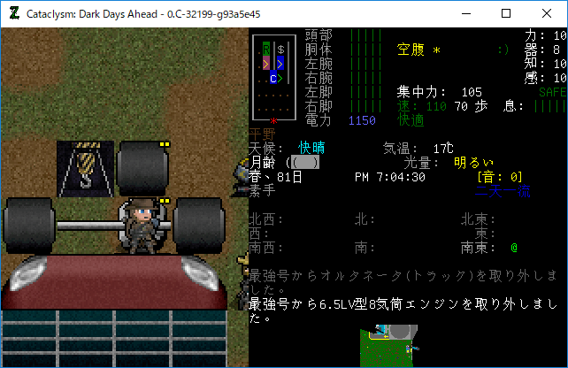 Cataclysmのプレイ日記を始めます。今回は最強号を電気自動車に改造します。初めての試みだから失敗するかもしれない。どんどん新しいことに挑戦をして失敗しまくろうぜ。