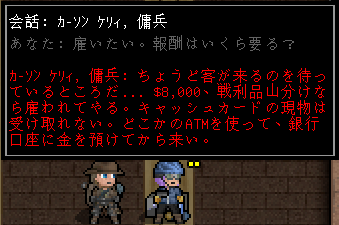 彼は8000ドルを払えば仲間になってくれるらしい。アレキサンダーは14000ドルくらい持っていたはずだ。それなのにいくら会話をしても仲間になってくれません。金を払うには彼の口座に振り込まないとダメなんだね。