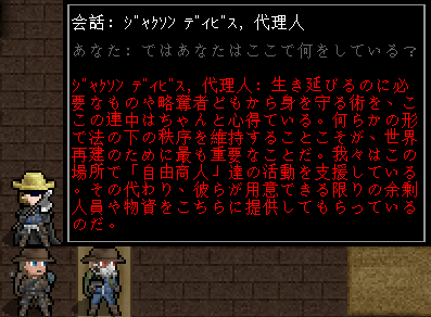 傭兵と代理人のどちらから先に話そうかな。代理人との会話は長くなりそうだから後回しにしよう。
