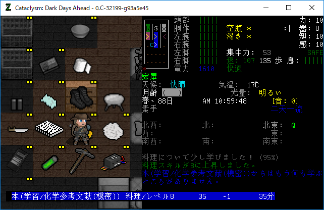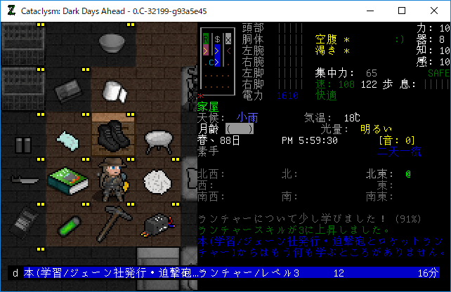 この投稿は「Cataclysm Dark Days Ahead」のプレイ日記です。毎日更新をします。目次はこちら
