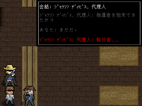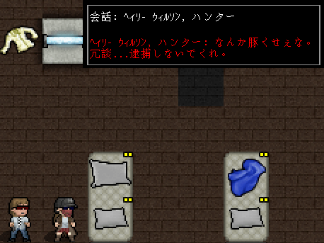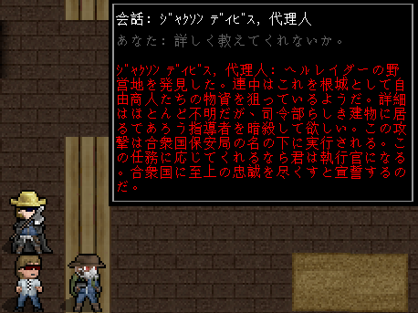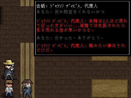 あれ?見たことのないNPCがいるぞ。何かの依頼がスイッチになって登場したのかな(内通者の依頼)。そこの怪しい服装をした人!名前と職業を教えなさい!