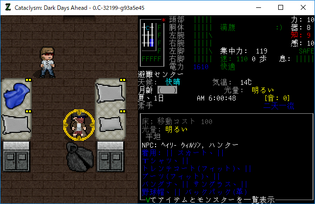 この投稿は「Cataclysm Dark Days Ahead」のプレイ日記です。毎日更新をします。目次はこちら。