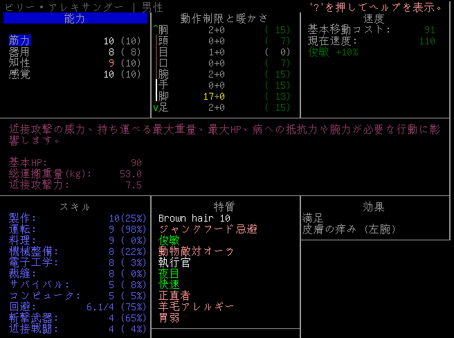 Cataclysmのプレイ日記を始めます。前回はグラボイドを撃破しました。昨夜からアレキサンダーの様子がおかしい。どうやら病気にかかったようです。