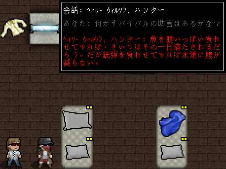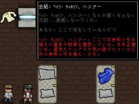 せっかくなのでNPCと会話しよう。ヘイリー・ウィルソンは避難センターに食料を提供しているハンターです。そういえば狩人や農民がいると教えてもらった記憶がある。