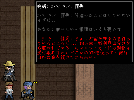 傭兵にお金を払うことが出来ました。キャッシュカードのお金はATMに預金すると使えるようになるんだね。これまでは全額を引き出していました。