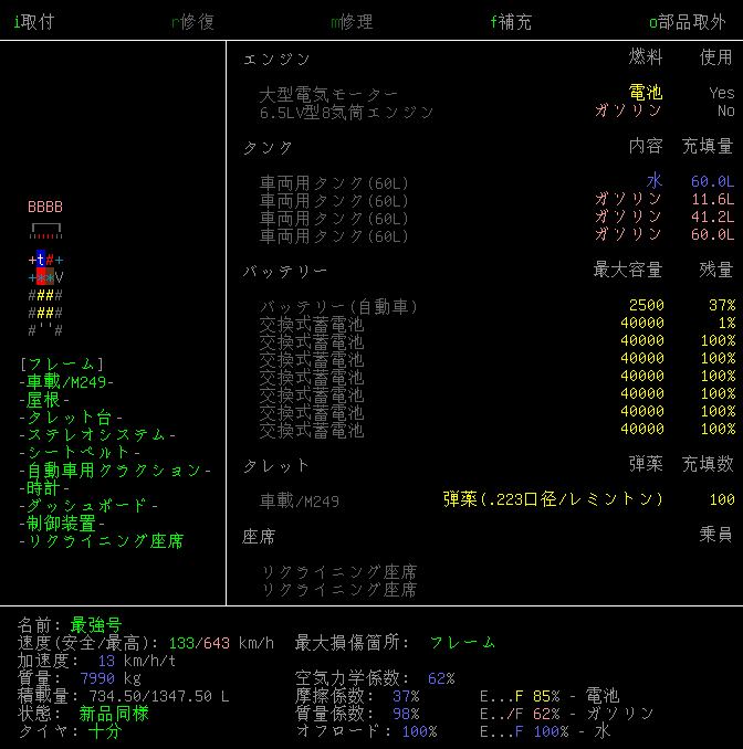 久しぶりに最強号の状態を確認します。ケリィを乗せたいから大きくしたいんだよね。大きく改造すると街の道路を走れなくなります。バイクがあれば便利だけど俺のバージョンはバイクラックを使えません。